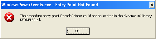 Entry Point Not Found. The procedure entry point DecodePointer could not be located in the dynamic link library KERNEL32.dll.